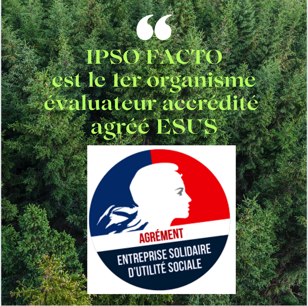 IPSO FACTO est un organisme de type C (Diplôme d’Accréditation N° 3-1976 rév. 0, portée disponible sur www.cofrac.fr) pour évaluer la qualité des Établissements et Services Sociaux et Médico-Sociaux (ESSMS). A ce titre nous figurons sur la liste de la HAS.